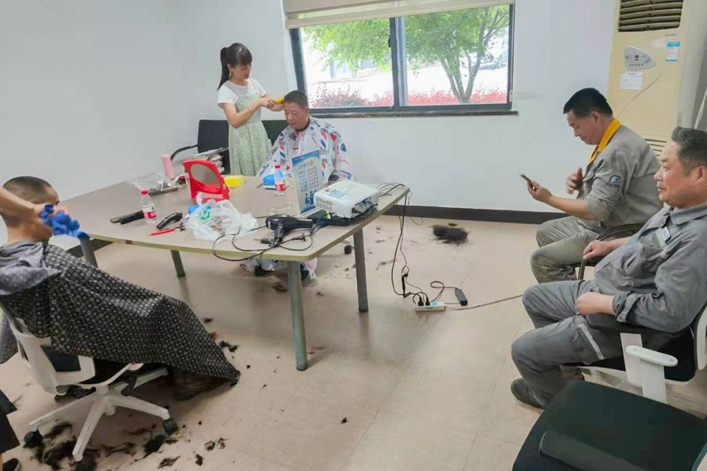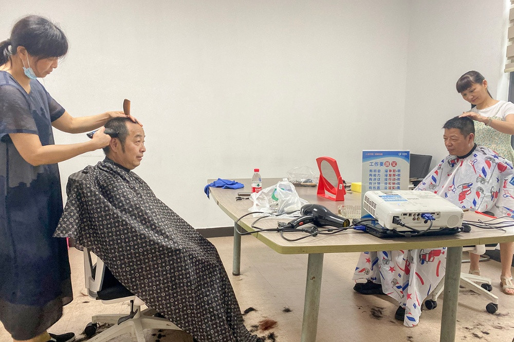 6月18日中午,公司邀請的兩位理發師來到了活動地點,貼心地詢問這些父親們對自己發型的要求,憑借嫻熟的技藝,為他們修剪出了滿意的發型。沒有花哨時尚的造型,理發師卻“剪”出了大家的笑容,同時也“剪”出了中達新材對員工們深切的關愛。