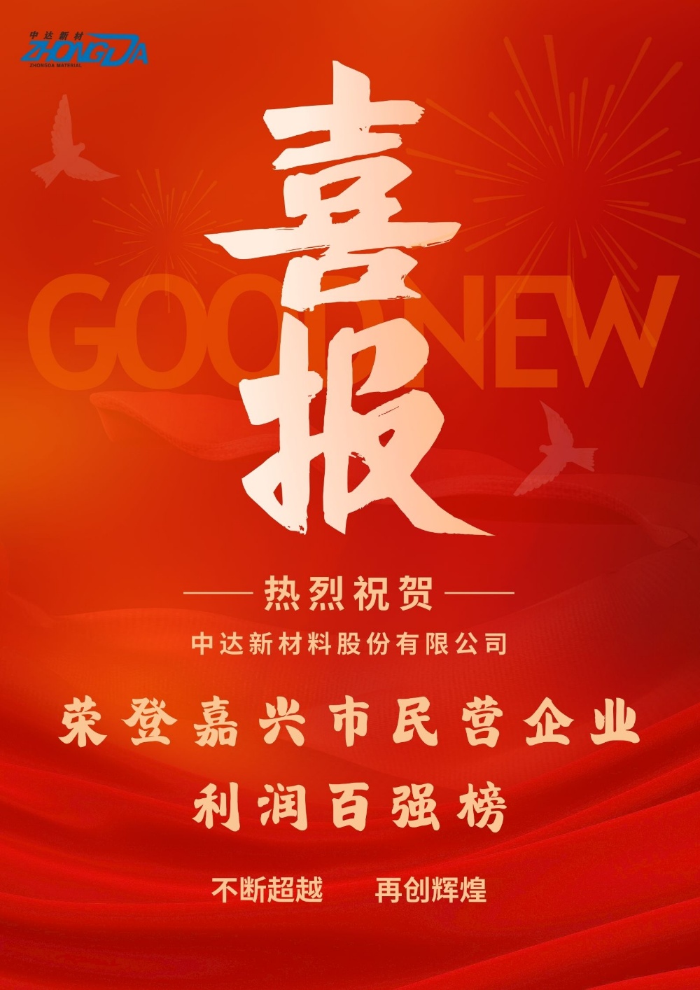 11月5日,嘉興市工商聯發布2024年嘉興市民營企業百強系列榜單,包括2024年嘉興市民營企業營收100強、利潤100強、研發投入100強、納稅100強、外貿出口100強五張榜單,中達新材成功上榜利潤100強!